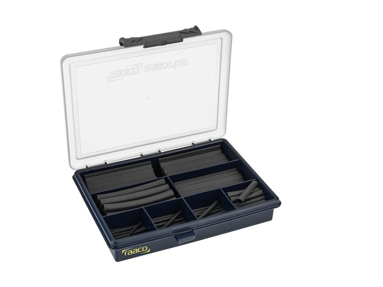 Shrink tubing set "BLACK", in sturdy assortment box. The various sizes can also be ordered individually or for refilling in polybags (100 pieces per bag).