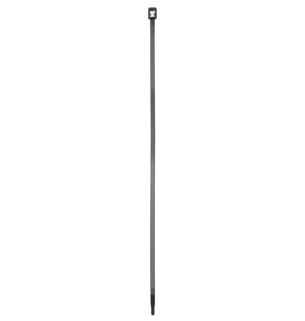 Cable tie Twist + Cut, cable tie with metal tongue for bundling exposed cables. Simple shortening of the cable tie by twisting the metal tongue. No cutting tool required. Tensile strength up to 23.4 kg. W4.2 x L 280 mm, PA6.6, bag of 100. Color: black.