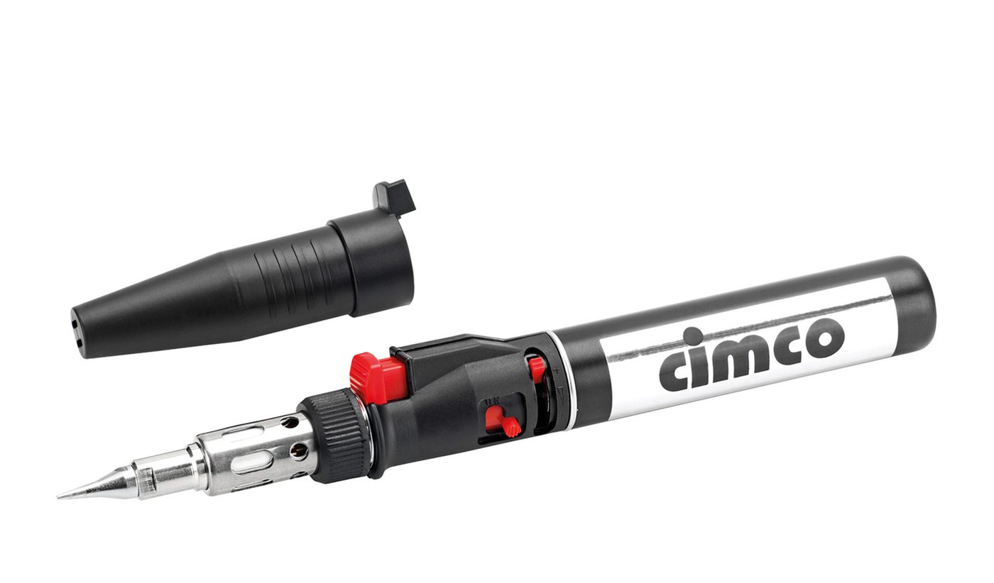 Gas soldering iron single unit, with sealing cap and locking device. For demanding soldering tasks without obstructing cables, wherever a power supply is not possible, e.g. in the installation, service and repair sector. Thanks to various interchangeable attachments, also suitable for heat shrinking work, micro welding and for cutting plastic foils and sheets. . With electronic ignition, power infinitely variable, open flame temperatures up to 1,300°C, soldering up to 500°C, heat shrinking up to 500°C, burning time approx. 60 min.