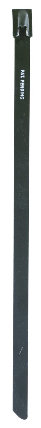 Cable ties made of stainless steel AiSi 316 (DiN 1.4401), with ball lock. Corrosion and radiation resistant, anti-magnetic. Extremely resistant to aggressive chemicals. Steel thickness 0.26 mm (width 4.6/7.9 mm) or 0.32 mm (width 12 mm). Coating made of polyester, UV-stabilized and halogen-free. Temperature resistance: -80°C to +538/150°C. Certification: UL, DNV, LR. WxL 7.9x360 mm, cable harness max. 102 mm, minimum tensile strength 1200 N, black coated